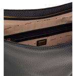 Hovedrommet åpnes med glidelås, og innsiden har et lyst fôr med logodetaljer samt en glidelåslomme til småting. En allsidig veske som kombinerer klassisk eleganse med retro-inspirerte detaljer, og som enkelt passer både til hverdags og mer pyntede anledninger.