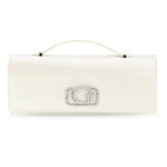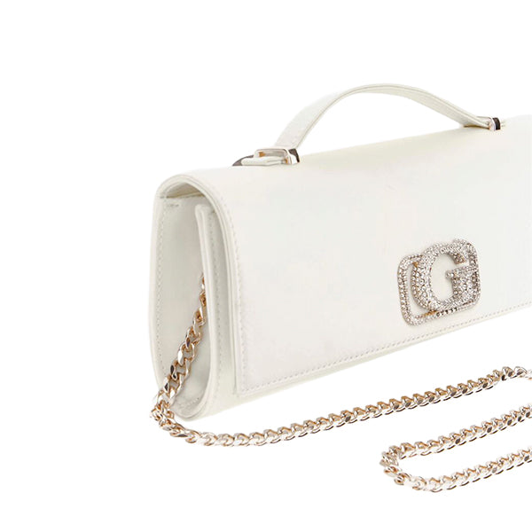 Guess Zalina Top Handle Clutch er en elegant veske designet for fest og spesielle anledninger. Den ensfargede overflaten fremhever den rene og sofistikerte silhuetten, mens den ikoniske GUESS-logoen i front gir et luksuriøst preg. Materialet i polyester og spandex gir vesken en lett glans som fanger lyset på en subtil måte – perfekt som prikken over i-en til et gjennomført antrekk.