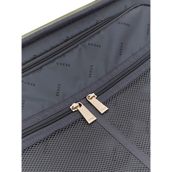 Gjør deg klar for dine eventyr med denne elegante og unike kabinkofferten fra Guess, laget av skinnimitasjon. Denne kofferten er utformet for å legge til et snev av luksus i reisen din, samtidig som den møter de nødvendige dimensjonskravene for de fleste flyselskaper.