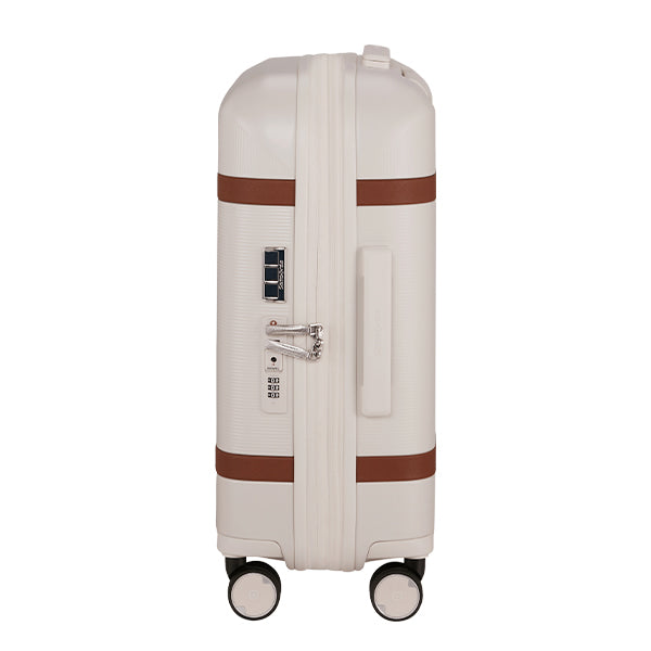Med fire stillegående spinnerhjul, dobbelt drahåndtak og bærehåndtak både på toppen og siden, er kofferten enkel å håndtere gjennom hele reisen. Ved siden av kodelåsen har Samsonite også gjort plass til en liten skinndetalj der du kan få preget dine initialer – en personlig touch på en gjennomført koffert.