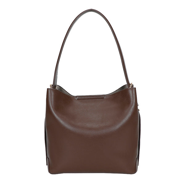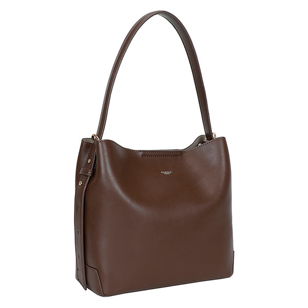 Vesken bæres i den faste, justerbare skulderremmen, som kan tilpasses til en behagelig lengde over skulderen. Den flate bunnen sørger for at vesken står stødig når du setter den fra deg.