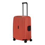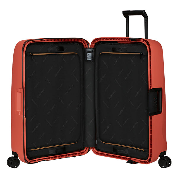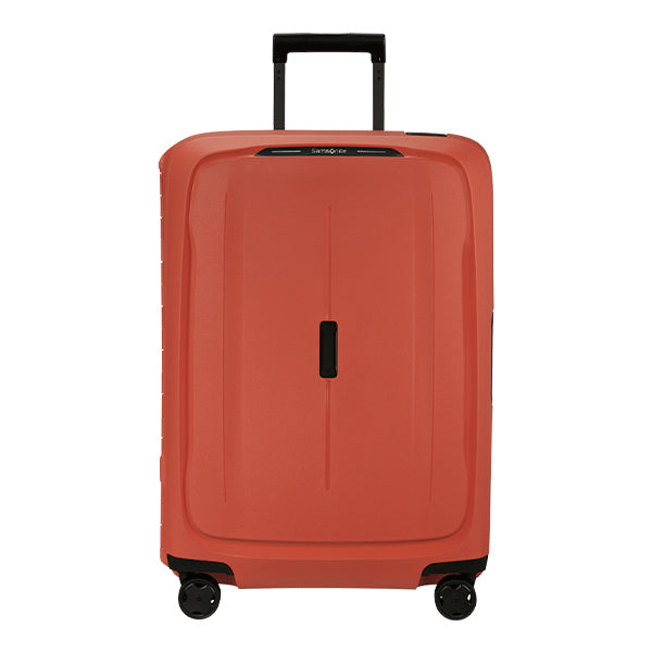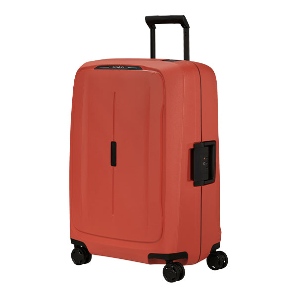 Essens er en robust og bærekraftig koffertmodell fra Samsonite, utstyrt med en pålitelig tre-punkts klipslås som inkluderer en kodelås på siden for ekstra sikkerhet. Kofferten har en praktisk gummilist langs åpningen som bidrar til å holde vann ute, men det er viktig å merke seg at den ikke er helt vanntett.