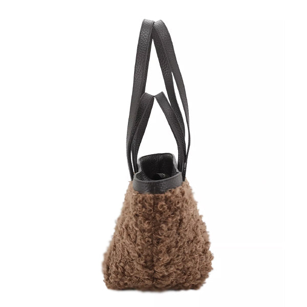 Denne elegante og unike vesken i medium størrelse skiller seg virkelig ut. Den er laget i mykt lammeskinn og dekorert med krøllet faux fur som er utformet for å ligne naturlig saueull. Den fluffy teksturen gir vesken et varmt, luksuriøst og lekent uttrykk, samtidig som størrelsen gjør den ideell for hverdagsbruk når du ønsker litt mer plass enn i en mini-modell.