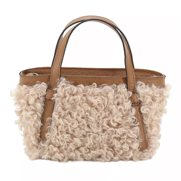 Denne søte og unike mini-håndvesken er et blikkfang i seg selv. Den er laget i mykt lammeskinn og dekorert med krøllet faux fur som er designet for å ligne saueull, noe som gir vesken et varmt, luksuriøst og lekent uttrykk. Den kompakte størrelsen gjør den perfekt når du bare vil ha med deg det viktigste – og samtidig tilføre antrekket det lille ekstra.
