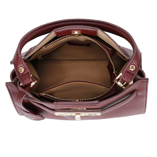 Vesken kan bæres i håndtaket for et klassisk uttrykk, eller med den avtagbare og justerbare skulderremmen for mer fleksibilitet. En veske som både er praktisk i bruk og elegant i uttrykket – ideell til både hverdags og spesielle anledninger.