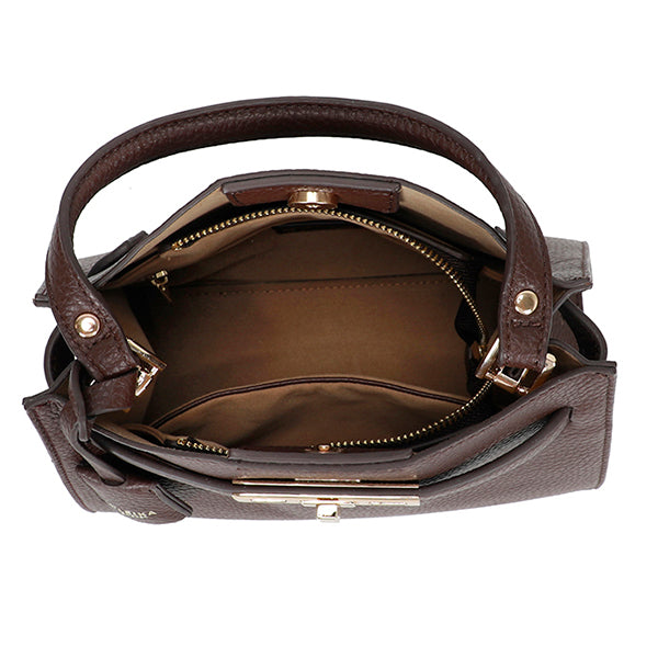 Vesken kan bæres i håndtaket for et klassisk uttrykk, eller med den avtagbare og justerbare skulderremmen for mer fleksibilitet. En veske som både er praktisk i bruk og elegant i uttrykket – ideell til både hverdags og spesielle anledninger.