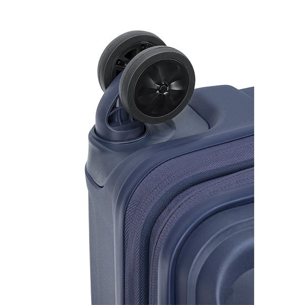 Kofferten kommer med et robust Airspeed DualTRAK hjulsystem som gir jevn og stabil rulling. Den har også et justerbart drahåndtak og en integrert TSA-godkjent kombinasjonslås for trygg og smidig innsjekk. I tillegg er hjulene festet med standardfeste som gjør det enkelt å skifte dem ut dersom det skulle bli behov for det senere.