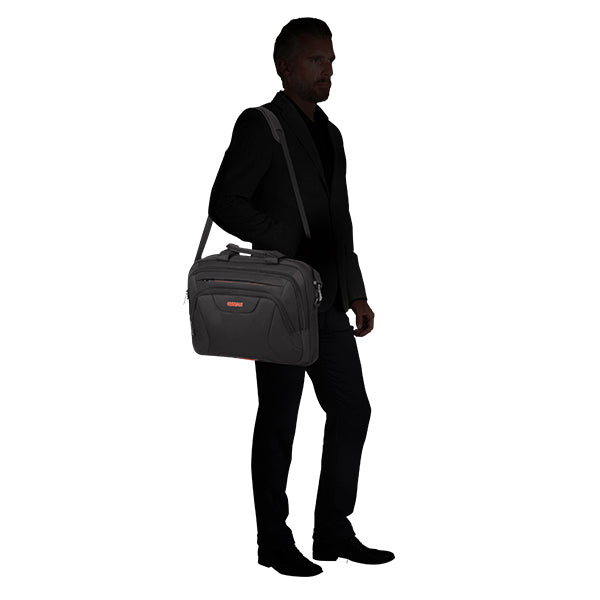 En praktisk arbeidsveske fra American Tourister, designet for deg som trenger en pålitelig og romslig følgesvenn i hverdagen. Vesken har et polstret hovedrom som passer til bærbar PC opptil 15,6’’, og flere mindre lommer som hjelper deg å holde styr på dokumenter, ladere og andre nødvendigheter.