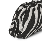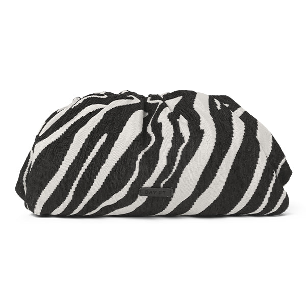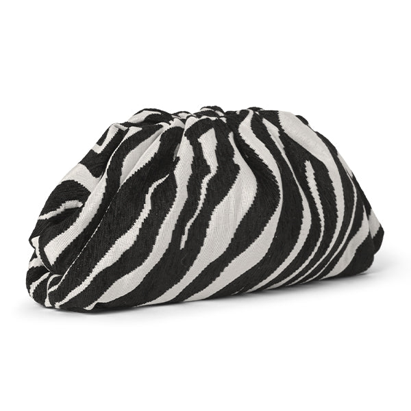 Denne clutchen er laget i et eksklusivt jacquardvevd stoff med zebramønster som gir et uttrykksfullt og iøynefallende preg. Den lukkes med en ramme i imitert skinn og har et lyst twillfôr som gjør det enkelt å se innholdet.
