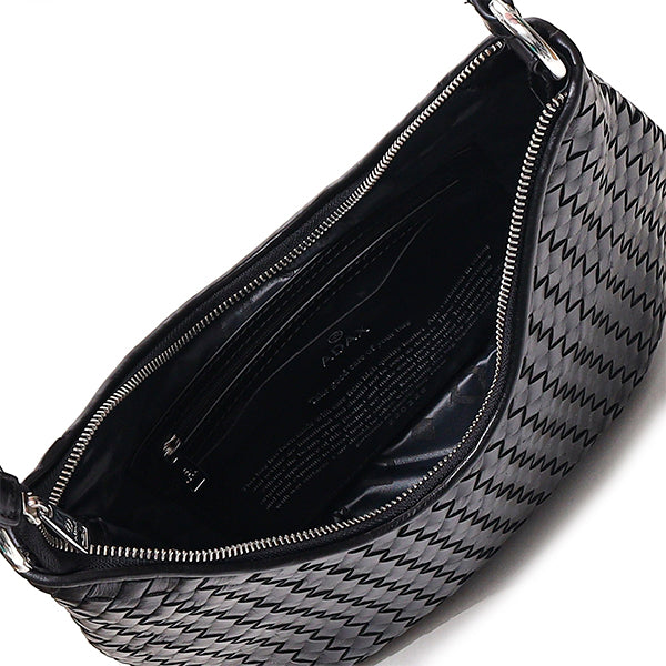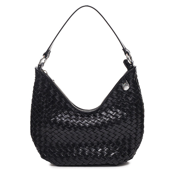 Mona er den mindre utgaven av den trendy vesken Mindy – med samme flotte design i en mer kompakt størrelse. Vesken er laget i glansfullt, flettet skinn som gir et eksklusivt uttrykk og en nydelig struktur. Den buede fasongen gjør modellen både feminin og moderne, perfekt til både hverdag og kveld.