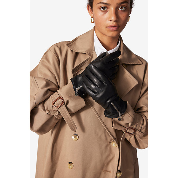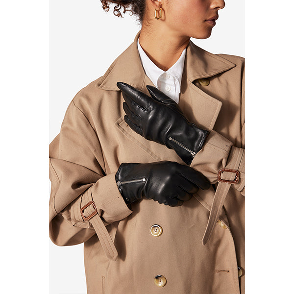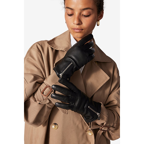 Lekker hanske i mykt skinn med glidelåsdetalj på oversiden som gir et moderne og raffinert uttrykk. Hansken er utstyrt med touch-funksjon på både pekefinger og tommel, slik at du enkelt kan bruke mobilen uten å ta den av.