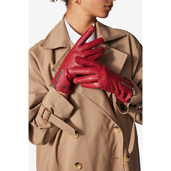 Lekker hanske i mykt skinn med glidelåsdetalj på oversiden som gir et moderne og raffinert uttrykk. Hansken er utstyrt med touch-funksjon på både pekefinger og tommel, slik at du enkelt kan bruke mobilen uten å ta den av.