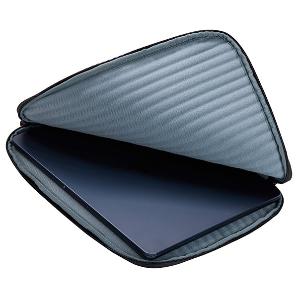 Omslaget har en polstret lomme som passer til bærbar PC opptil 13", og det ribbede EVA-interiøret gir god beskyttelse mot støt og riper. På forsiden finner du en praktisk glidelåslomme til ladere, kabler og annet tilbehør. Glidelåsåpningen går fra siden og opp til toppen, slik at du enkelt får tilgang til PC-en både når etuiet ligger flatt eller står oppreist.
