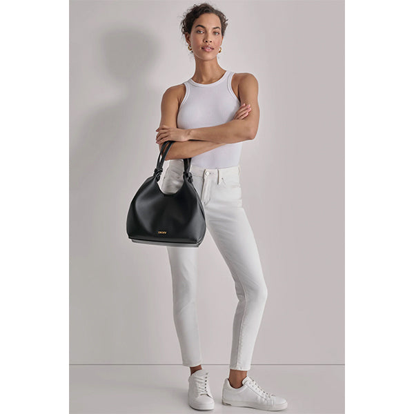 Paula Commuter Medium Tote fra DKNY kombinerer et strømlinjeformet design med en mer kompakt og håndterlig størrelse – perfekt for hverdagen når du vil ha med deg det viktigste uten at vesken føles stor og tung. Den gir et gjennomført og moderne uttrykk som er enkelt å bruke fra morgen til kveld.