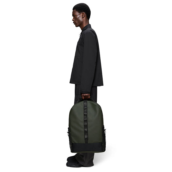 Trail Clip Front Backpack er laget for en aktiv livsstil, med en kombinasjon av praktiske løsninger og et tidløst, urbant uttrykk. Den er regntett og laget i Rains sitt signaturmateriale i PU, kjent for slitestyrke, holdbarhet og en jevn overflate.