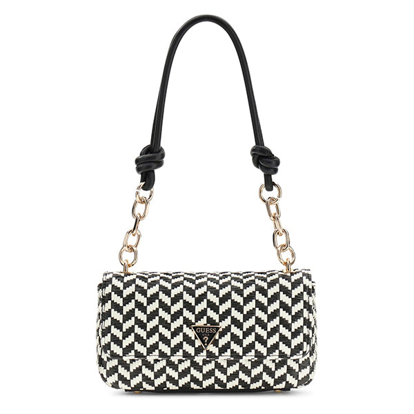 Guess Tessi Flap Shoulder Bag er en kompakt og gjennomført veske med et flettet uttrykk som gir designet liv og struktur. Den ikoniske trekantlogoen i front og gullfargede kjededetaljer gir vesken et tydelig Guess-preg og et moderne uttrykk.