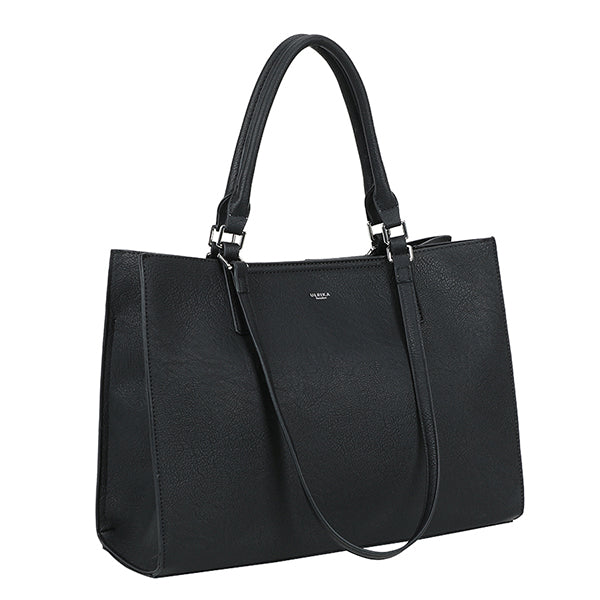 Ulrika Design skulderveske er en romslig og stilren shopper i imitert skinn, designet for en aktiv hverdag med behov for både plass og struktur. Det rene uttrykket og de markerte detaljene gir vesken et moderne preg som passer like godt til jobb og studier som til hverdagsbruk.