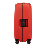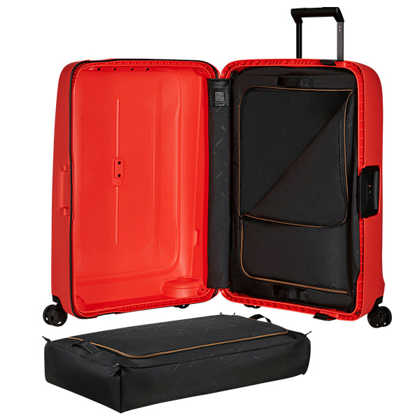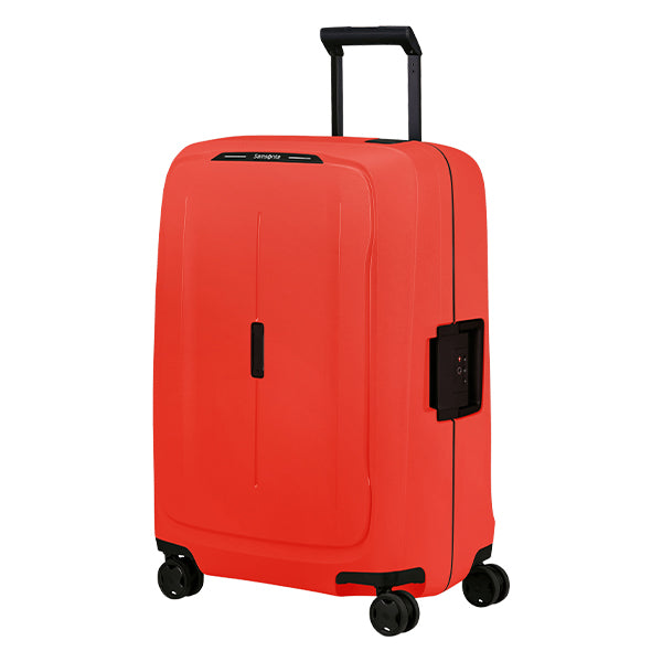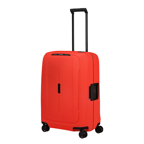 Essens er en robust og bærekraftig koffertmodell fra Samsonite, utstyrt med en pålitelig tre-punkts klipslås som inkluderer en kodelås på siden for ekstra sikkerhet. Kofferten har en praktisk gummilist langs åpningen som bidrar til å holde vann ute, men det er viktig å merke seg at den ikke er helt vanntett.