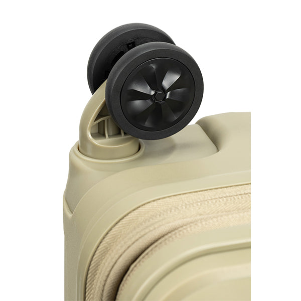 Kofferten kommer med et robust Airspeed DualTRAK hjulsystem som gir jevn og stabil rulling. Den har også et justerbart drahåndtak og en integrert TSA-godkjent kombinasjonslås for trygg og smidig innsjekk. I tillegg er hjulene festet med standardfeste som gjør det enkelt å skifte dem ut dersom det skulle bli behov for det senere.