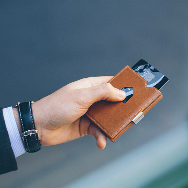 Exentri wallet er en smart og elegant kortholder med plass til mange kort, sedler og kvitteringer. Legg de kortene du bruker oftest i de ytterste lommene så har du hurtigtilgang til kortene der ved å skyve de ut med tommelen.