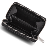 Lommeboken lukkes med en elegant sølvbelagt glidelås som gir et sofistikert uttrykk og samtidig sørger for at eiendelene dine holdes trygt på plass. På innsiden finner du to separate rom, skilt av en tynn glidelåslomme, perfekt til oppbevaring av mynter. I tillegg har lommeboken et lite rom i den ene enden og lommer som rommer tre kort i den andre, slik at du enkelt kan organisere det mest nødvendige.
