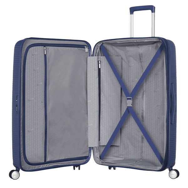 Hovedrommet på kofferten har en toveis glidelås som kan låses fast i TSA-kodelåsen på siden. Innvendig har kofferten en skilleduk med en glidelåslomme, og en stropp med klips på andre siden. Kofferten har også en liten glidelåslomme som er praktisk til oppbevaring av diverse små ting.