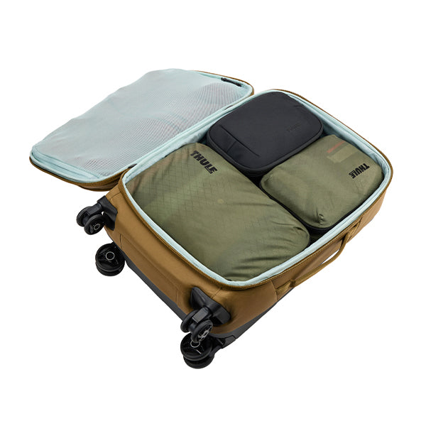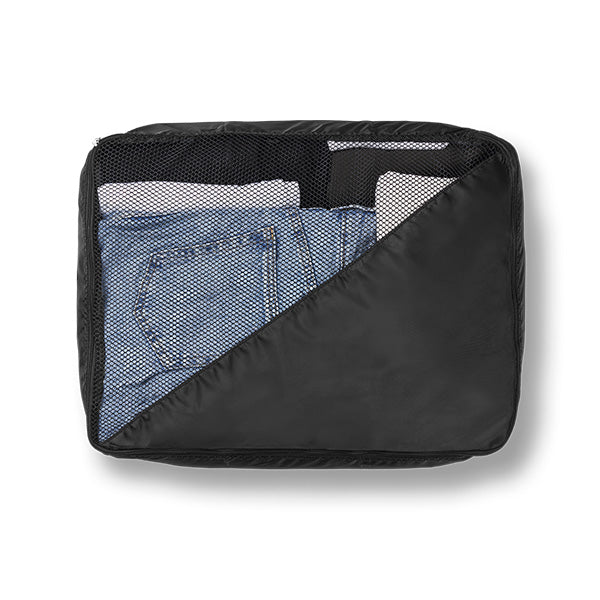 Kofferten har to utvendige glidelåslommer, og et hovedrom med en toveis glidelås som kan låses i TSA-kodelåsen på siden. Innvendig er kofferten delt opp i en stor og romslig avdeling med klipslås-stropp på ene siden, og en skilleduk med glidelås på andre siden.