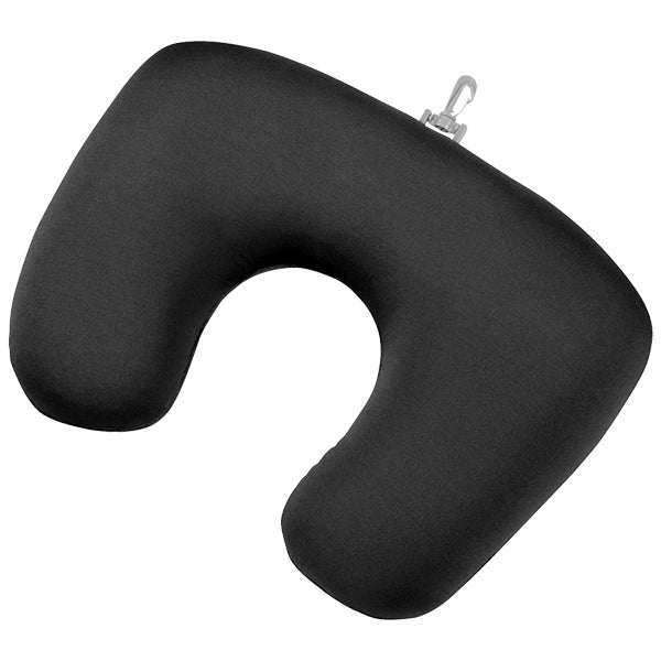 Nakkeputen har et mykt bomullstrekk som er skånsomt mot huden. Den har også en krok som kan festest på en ryggsekk, veske eller bagasje. Dermed slipper du å pakke den ned eller bære på den.