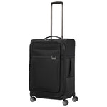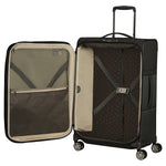 Kofferten har en utvendig glidelåslomme foran og en på siden. Hovedrommet har en toveis glidelås som låses i TSA-kodelåsen. Innvendig har kofferten en skilleduk på ene siden og en klipsstropp på andre siden.