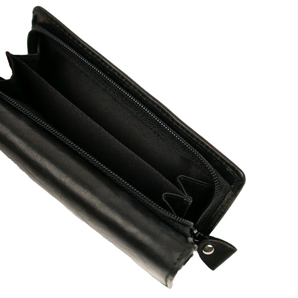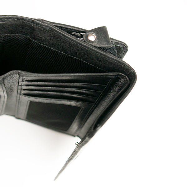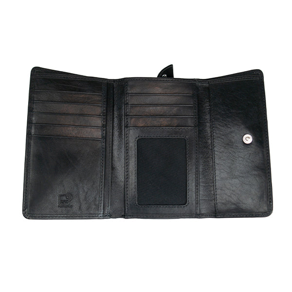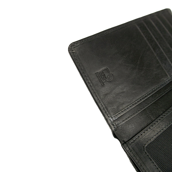 Innvendig er det en nettinglomme som passer godt til ID-kort eller bilder, samt ni kortlommer som gir god plass til alle nødvendige kort. I tillegg har lommeboken større lommer bak kortlommene for ekstra oppbevaring, og en egen avdeling på toppen for sedler. Lommeboken lukkes med en knapp for sikker oppbevaring.
