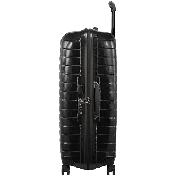 Proxis, Samsonites nyeste toppmodell, er en koffert som forener letthet og ekstrem fleksibilitet takket være sitt unike Roxkin-materiale. Dette eksklusive flerlagsmaterialet, utviklet av Samsonite, har evnen til å gjenoppta sin form, samtidig som det er ekstremt sterkt, motstandsdyktig og lett. Roxkin™-skallet er laget av polypropylen og er fullstendig resirkulerbart, noe som betyr at kofferten kan gjenbrukes eller resirkuleres ved slutten av sin levetid.