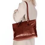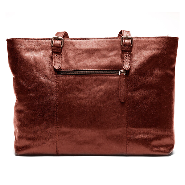 Vesken har en utvendig glidelåslomme bak og et romslig hovedrom med glidelås.
