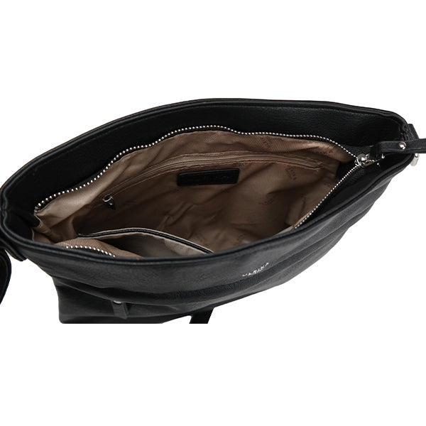 Vesken har to praktiske utvendige glidelåslommer, en foran og en bak, som gir enkel tilgang til nødvendigheter. Hovedrommet, som lukkes med glidelås, gir trygg oppbevaring av eiendelene dine. Innvendig finner du et lyst fôr, en liten glidelåslomme og to åpne lommer, slik at du enkelt kan organisere alt fra nøkler til mobiltelefon.