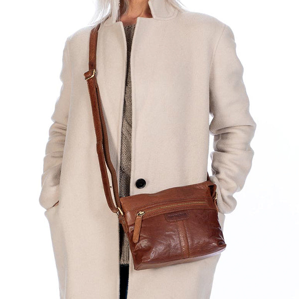 Denne tidløse skuldervesken er laget av vegetabilsk garvet vannbøffelskinn – et naturlig og slitesterkt materiale som bare blir vakrere med tiden. Den kompakte størrelsen gjør den perfekt til hverdagens viktigste eiendeler, samtidig som den har et klassisk uttrykk som passer til enhver anledning.