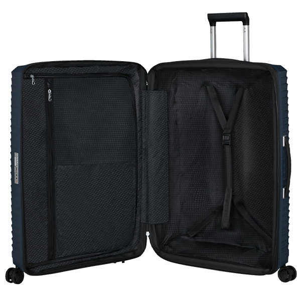Kofferten har en toveis glidelås med TSA-kodelås. Innvendig er kofferten delt opp i to avdelinger, ene siden er dekket med duk og den andre har stropp med klipslås. Siden med duk har også en ekstra glidelåslomme, praktisk til oppbevaring av ladere og annet smått.