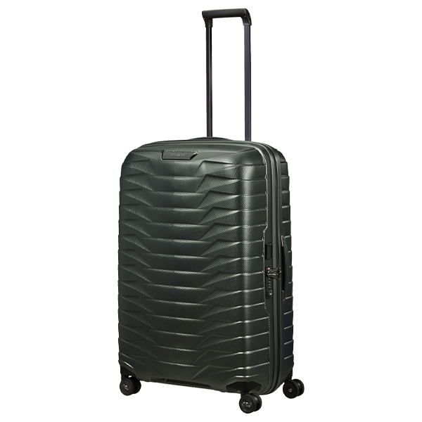 Proxis, Samsonites nyeste toppmodell, er en koffert som forener letthet og ekstrem fleksibilitet takket være sitt unike Roxkin-materiale. Dette eksklusive flerlagsmaterialet, utviklet av Samsonite, har evnen til å gjenoppta sin form, samtidig som det er ekstremt sterkt, motstandsdyktig og lett. Roxkin™-skallet er laget av polypropylen og er fullstendig resirkulerbart, noe som betyr at kofferten kan gjenbrukes eller resirkuleres ved slutten av sin levetid.