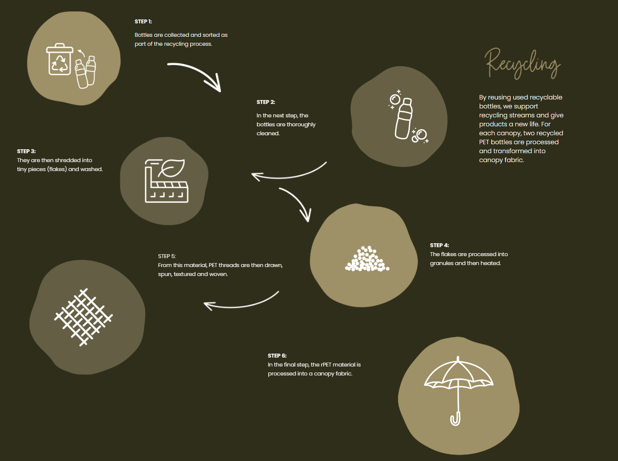 Nature Mini er bærekraftige paraplyer fra Doppler som er produsert av resirkulerte plastflasker og tremateriale.