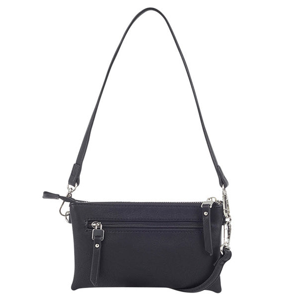 Vesken er designet med praktiske detaljer, inkludert en utvendig liten glidelåslomme bak for rask tilgang til småting. Hovedrommet lukkes med en glidelås, og innvendig finner du en liten glidelåslomme for sikker oppbevaring av verdisaker.