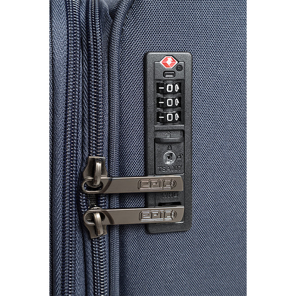 Kofferten har to utvendige glidelåslommer, og et hovedrom med en toveis glidelås som kan låses i TSA-kodelåsen på siden. Innvendig er kofferten delt opp i en stor og romslig avdeling med klipslås-stropp på ene siden, og en skilleduk med glidelås på andre siden.