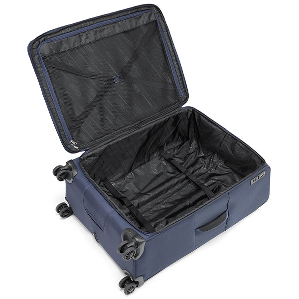 Innvendig er kofferten smart designet for optimal organisering. Den ene siden har en stor og romslig avdeling med klipslås-stropper som holder klær og gjenstander på plass, mens den andre siden har en skilleduk med glidelås for å holde tingene adskilt og organisert.