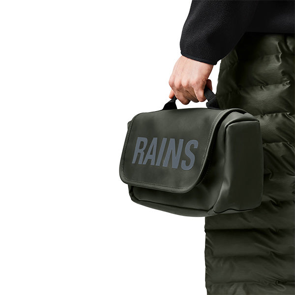 Romslig og pålitelig toalettmappe fra Rains, ideell for enhver reise. Toalettmappen har et matt og stilrent design, og den er sterkt vannavvisende, noe som gjør den perfekt for bruk under alle forhold.