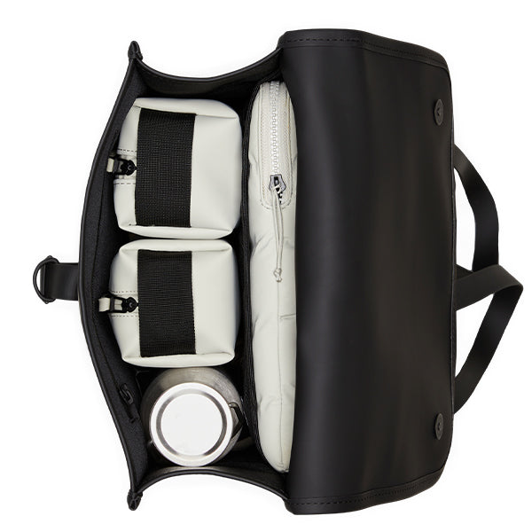 Sekken har en unik låsemekanisme med en utvendig karabinkrok, og under klaffen har den to magnetknapper som sikrer klaffen på en praktisk måte. Den utvendige glidelåslommen på baksiden gir rask tilgang til viktige ting, mens innsiden av sekken er utstyrt med en liten glidelåslomme og en lomme dedikert til laptop.