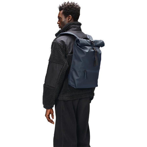 Rolltop Rucksack er laget av Rains' signatur PU-materiale, kjent for sin slitestyrke, holdbarhet og myke finish. En ryggsekk som kombinerer funksjonalitet og stil, perfekt for alle som trenger en pålitelig sekk i varierende værforhold.