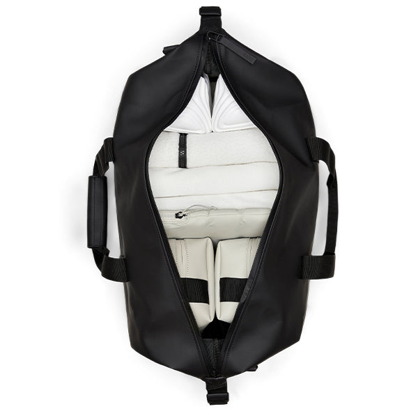 Klassisk og romslig weekendbag fra Rains, designet for helgens spontane utflukter og lengre eventyr! Denne bagen har en stilren, urban look med sitt matte, vannavvisende materiale som kombinerer eleganse med praktisk funksjonalitet – perfekt for deg som både vil ha stil og bekvemmelighet.