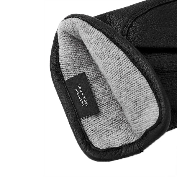 Denne myke og varme hansken for kvinner har et tidløst, klassisk design, perfekt for kjølige høst- og vinterdager. Den er laget av hjorteskinn, et smidig og isolerende lær med en vakker tekstur, som bare blir mer behagelig jo mer den brukes.