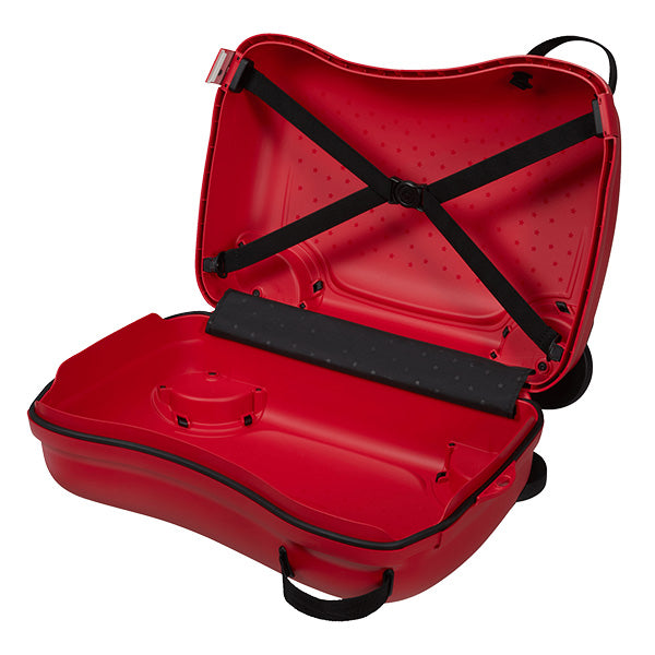 Denne kofferten forvandler reisen til en morsom opplevelse for barna. Med muligheten til å sitte på kofferten og kjøre rundt, blir turen underholdende og praktisk. Enten barnet ønsker å styre kofferten selv eller du foretrekker å trekke den etter deg, gir denne kofferten fleksibilitet. Du kan også enkelt feste stroppen på hver side av kofferten for å kunne bære den på skulderen.