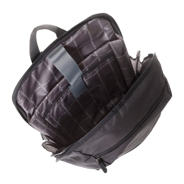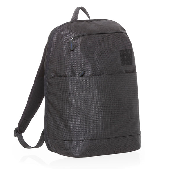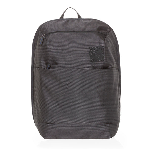 Denne moderne og stilrene ryggsekken fra Mandarina Duck er laget i et slitesterkt materiale, som gjør den ypperlig til enhver anledning, enten du skal på jobb, skole eller reise. Sekken lukkes med en solid glidelås som gir enkel tilgang til det romslige hovedrommet. Innvendig finner du en glidelåslomme, to pennholdere og to nettinglommer for organisering av småting. Hovedrommet har også en polstret laptoplomme med klaff og borrelåslukking, samt en polstret lomme til nettbrett, slik at du kan oppbevare elektronikk sikkert.