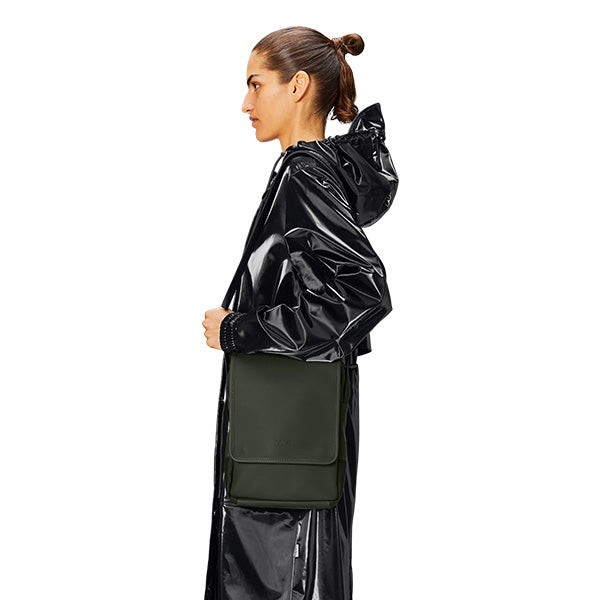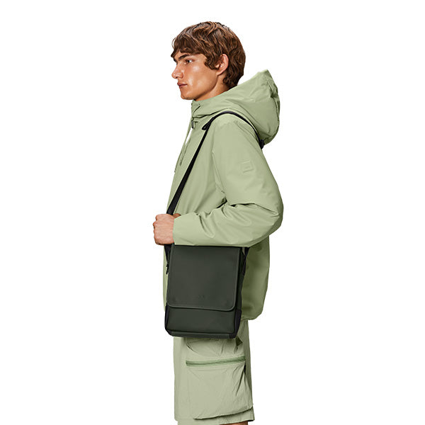 Trail Reporter Bag er det ideelle tilbehøret for en aktiv livsstil på farten. Den presenterer en stilfull og rektangulær profil som sitter tett inntil kroppen, og bæres komfortabelt med en justerbar crossbody-stropp. Stroppen er jacquard-vevd med Rains' karakteristiske logo, og gir et ekstra snev av stil til veskens utseende.