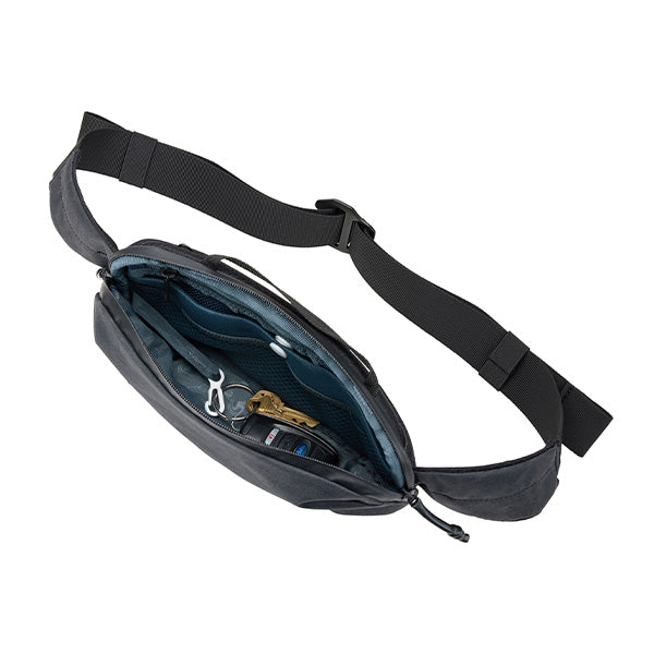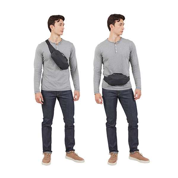 Denne praktiske bum bagen fra Thule er perfekt for både hverdagsbruk og reise. Den har en utvendig glidelåslomme på baksiden som er nyttig for å oppbevare pass og andre viktige dokumenter. Hovedrommet har en toveis glidelåslukking, og inni finner du en nøkkelstropp, en liten glidelåslomme og en åpen lomme med knapp.