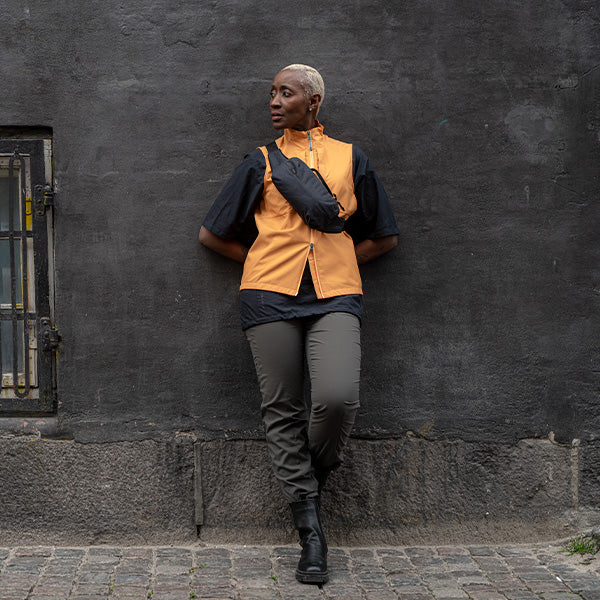 Bum bagen har en justerbar stropp med låsehemper, slik at du enkelt kan tilpasse lengden etter ønske og bruke den enten rundt midjen eller på tvers av kroppen, avhengig av anledningen.